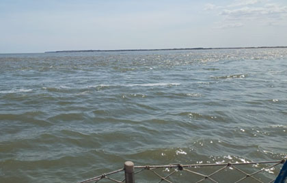 Una vez que ingresaste al río debes aprovechar el reflujo sin demora si la intención es acercarte a Viedma, ya que con marea bajando seguramente vas a encallar, sobre todo en los primeros 10 km.