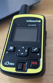Fernando trajo en su mochila este aparatito que transmitía, cada media hora, nuestra posición, rumbo y velocidad. Se puede seleccionar mayor o menor frecuencia de transmisión. Lógicamente, cada “subida” de información al satélite tiene un costo.