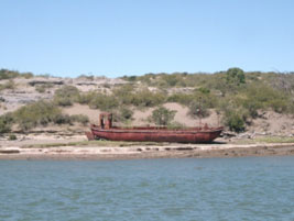 Nos pareció que la profundidad seguía del lado de Viedma, ya que veíamos una linda barranca a nuestra izquierda. Error. Varamos feo. Como la marea seguía creciendo al rato estábamos otra vez a flote y volvemos para atrás. Javier venía a nuestro encuentro en el Payuca y nos empezó a guiar.